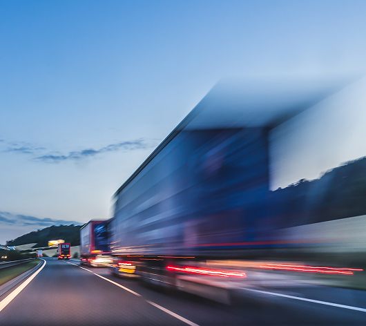 Aufnahme einer Autobahn mit LKWs auf der Strecke